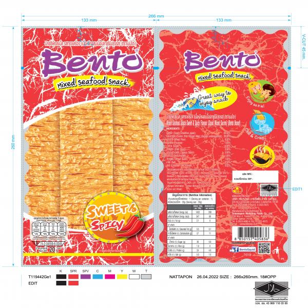 Brown colour and crispy texture. Hot and sweet taste, spicy takoyaki flavour / Short sheet with a cross pattern