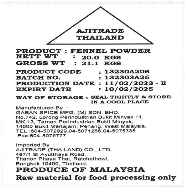 Fennel Whole/Ground/Powder / Malaysia