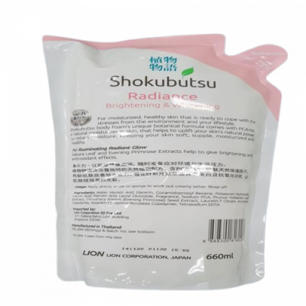 • Shokubutsu Radiance Body Foam (Calming & Whitening) 200 ml., 900 ml., 600 ml., 660 ml (SINGAPORE)
