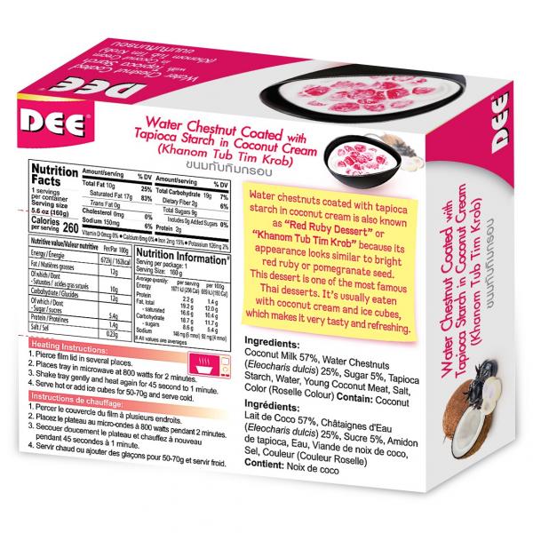 Frozen Water Chestnut Coated with Tapioca Starch in Coconut Cream Storage: Keep frozen at -18 C