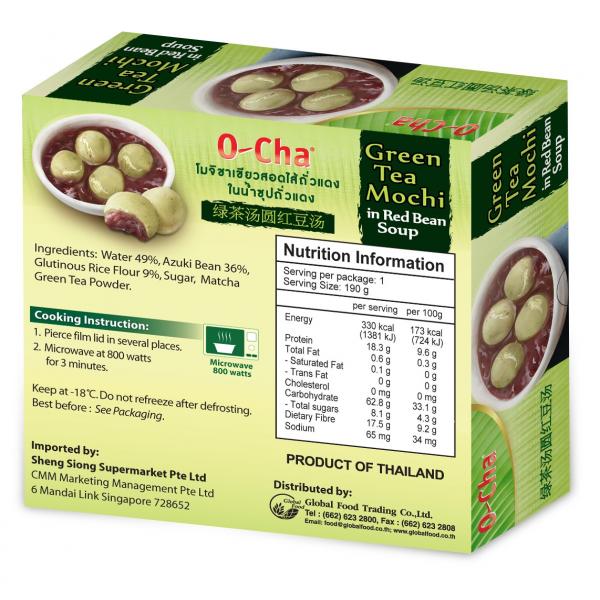 PRODUCT NAME: Frozen Green Tea Mochi in Red Bean Syrup Storage: Keep frozen at -18 C