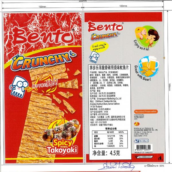 Light brown-brown colour, soft and elastic texture. Sweet and spicy taste, spices and tom yum flavour