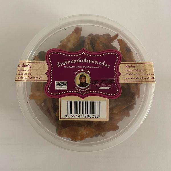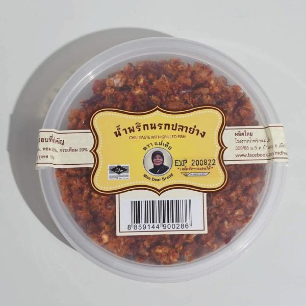 น้ำพริกนรกปลาย่างสำเร็จรูป ในกระปุกพลาสติก สามารถเปิดทานได้เลย