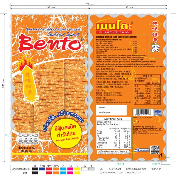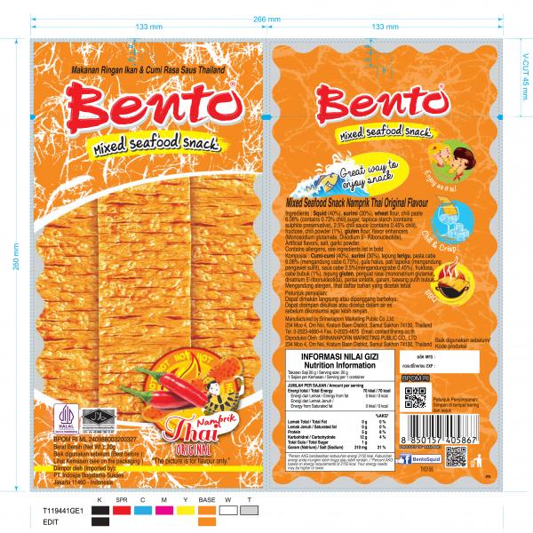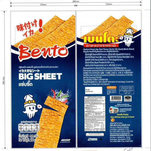 ซีฟู้ดสแน็คปลาหมึกอบรสสาหร่ายสไปซี่ (เนื้อปลาหมึกผสมเนื้อปลาซูริมิ) (ตราเบนโตะ)