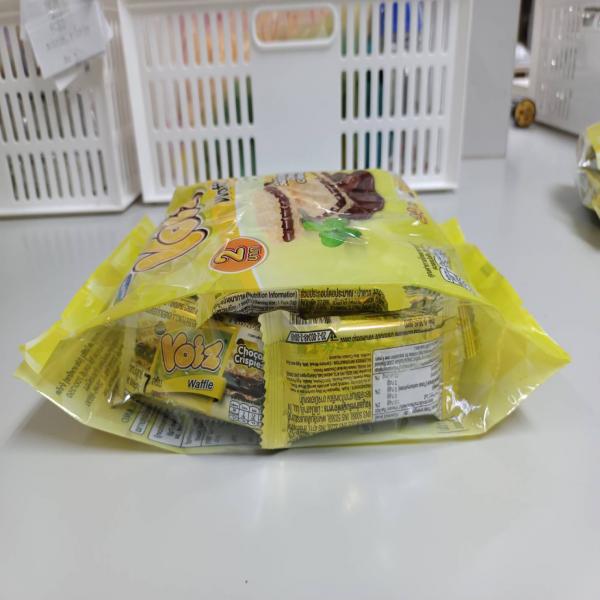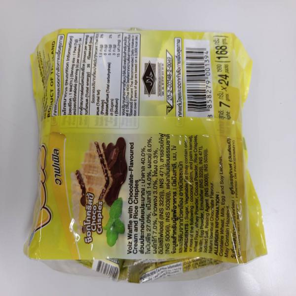 วาฟเฟิลไส้ครีมรสช็อกโกแลตและข้าวพอง
