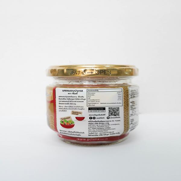 เป็น Salmon Flake ที่นำ Cleaning Defect ออก และนำมาแปรรูปโดยผสม Ingredient และบรรจุขวดแก้ว ปิดฝา เพื่อนำเข้าสู่ขั้นตอนการฆ่าเชื้อตามอุณหภูมิและเวลาที่กำหนด