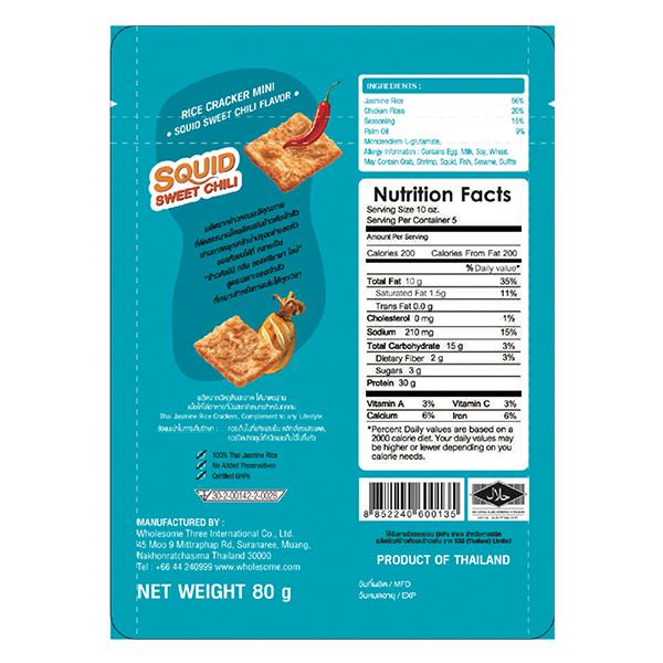 ข้าวตังมินิคลุกเคล้าด้วยน้ำซอสและโดยด้วยหมึกหยอง