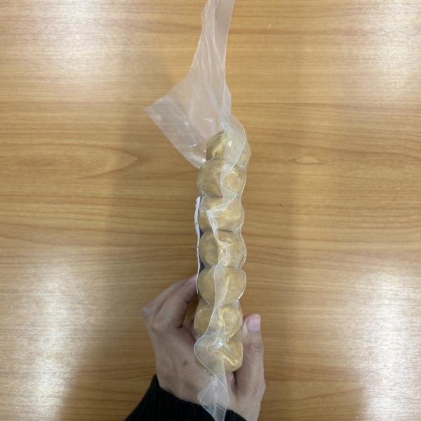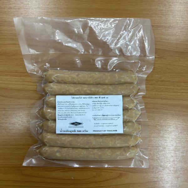 3.ทอด : ในน้ำมันเล็กน้อยใช้ไฟปานกลางประมาณ 1-2 นาที หมั่นกลับไส้กรอกบ่อยๆ