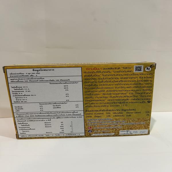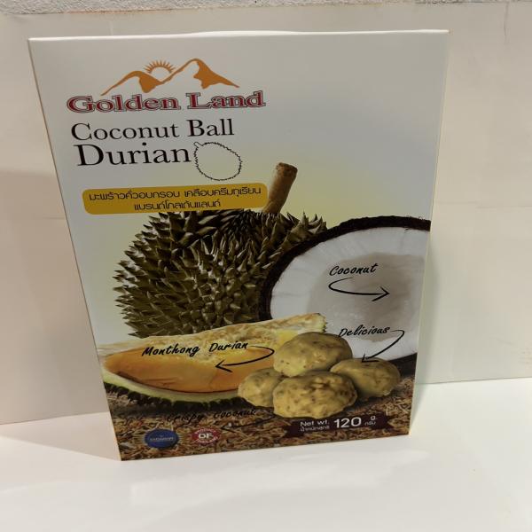 เนื้อมะพร้าวอบกรอบเคลือบด้วยช็อคโกแลตรสทุเรียน