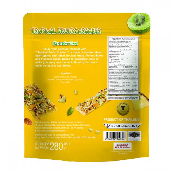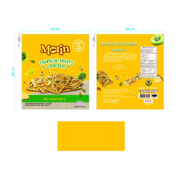 แผ่นเครกเกอร์สี่เหลี่ยมทาด้วยน้ำปรุง โรยด้วยธัญพืชต่าง มีรสชาติหวานและมีกลิ่นหอม