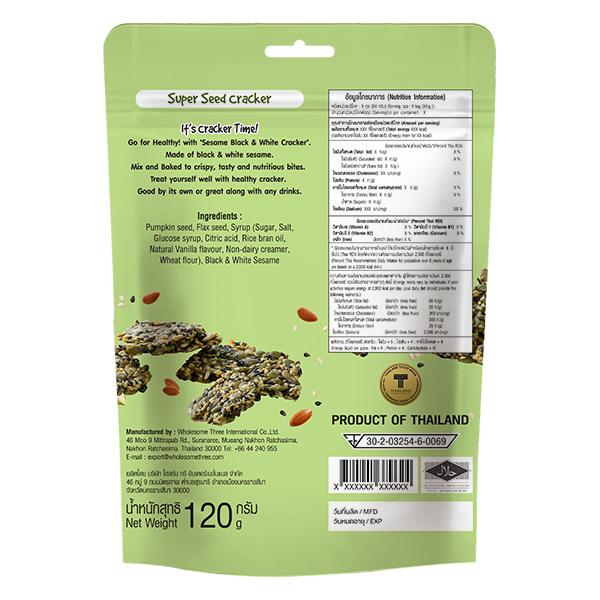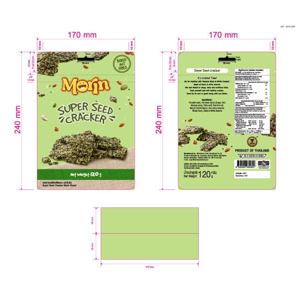 แผ่นเครกเกอร์สี่เหลี่ยมทาด้วยน้ำปรุง โรยด้วยธัญพืชต่างๆ