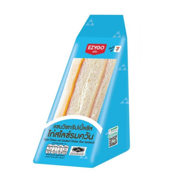 แซนวิชทริปเปิ้ลชีสไก่สไลซ์รมควัน