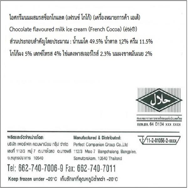 • Chocolate flavoured milk ice cream (French Cocoa)
