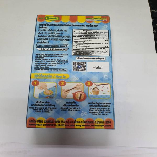 Wafer cone and confectionery chocolate and milk flavoured