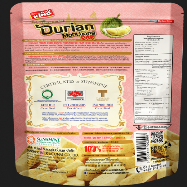 ทุเรียนหมอนทองอบกรอบชนิดแท่ง