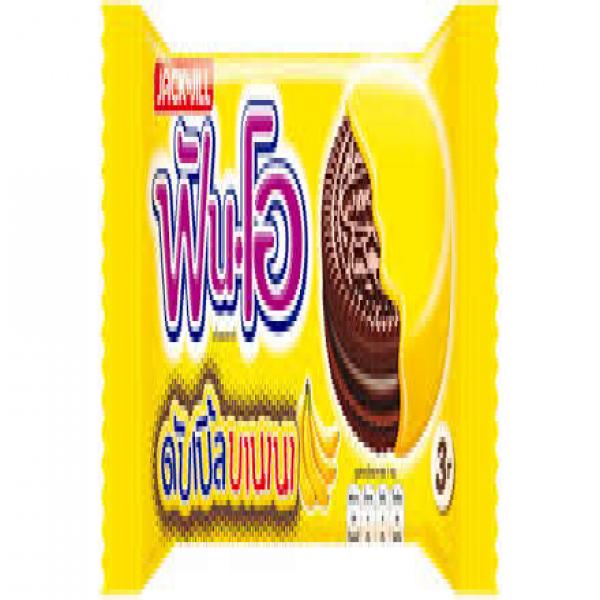 คุกกี้แซนวิชรสช็อกโกแลต สอดไส้ครีมช็อกโกแลต เคลือบครีมกลิ่นกล้วย