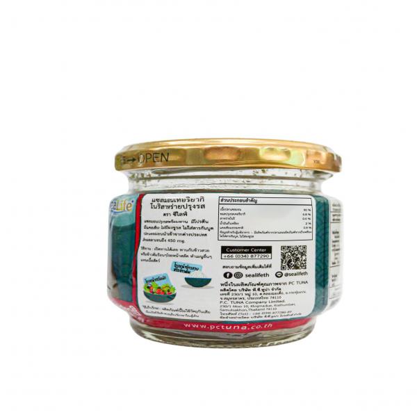 เป็น Salmon Flake ที่นำ Cleaning Defect ออก และนำมาแปรรูปโดยผสม Ingredient และบรรจุขวดแก้ว ปิดฝา เพื่อนำเข้าสู่ขั้นตอนการฆ่าเชื้อตามอุณหภูมิและเวลาที่กำหนด