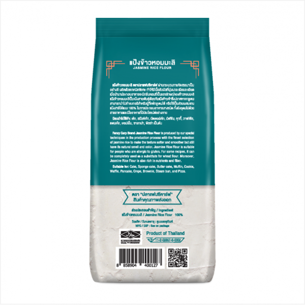 แป้งข้าวหอมมะลิตราปลาแฟนซีคาร์ฟ ผ่านกระบวนการคัดสรรมาเป็นอย่างดีจากเมล็ดพันธุ์ข้าวหอมมะลิชั้นเยี่ยม ผลิตด้วยเทคนิคพิเศษ ทำให้มีเนื้อสัมผัสที่นุ่มนวล เนียนละเอียดเป็นพิเศษ เมื่อนำมาประกอบอาหารทำให้มีกลิ่นหอมที่เป็นเอกลักษณ์ของข้าวหอมมะลิ แป้งข้าวหอมมะลิเป็นแป้งสายพันธุ์เดียวกับแป้งข้าวเจ้าซึ่งปราศจากกลูเตน สามารถนำไปทำเบเกอร์รีสำหรับผู้ที่แพ้กลูเตนได้ หรือใช้เป็นส่วนผสมแทนแป้งสาลีได้แบบ 100% ในการประกอบอาหารบางชนิด ทั้งยังอุดมไปด้วยสารอาหารและมีใยอาหารที่มีประโยชน์ต่อร่างกาย นิยมนำไปใช้ทำเค้ก, สปันจ์เค้ก, บัตเตอร์เค้ก, มัฟฟิน, คุกกี้ , วาฟเฟิล, แพนเค้ก, บราวนี่, เครปเย็น, ซาลาเปา, พิซซ่า เป็นต้น