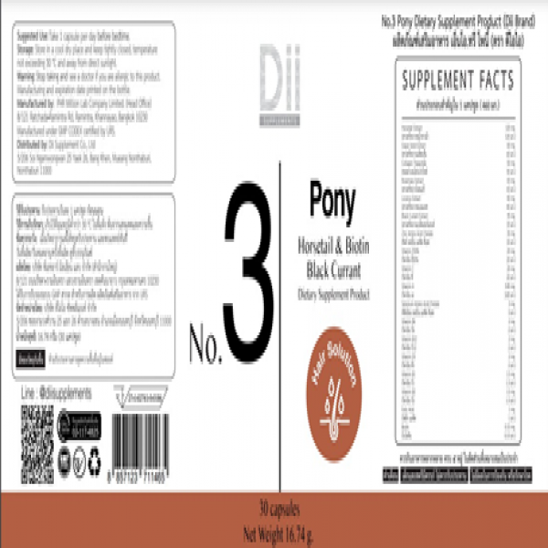 ผลิตภัณฑ์เสริมอาหาร เอ็นโอ.ทรี โพนี่ (ตรา ดีไอไอ)