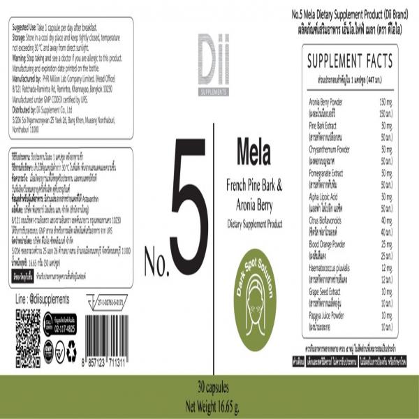 ผลิตภัณฑ์เสริมอาหาร เอ็นโอ.ไฟฟ์ เมลา (ตรา ดีไอไอ)