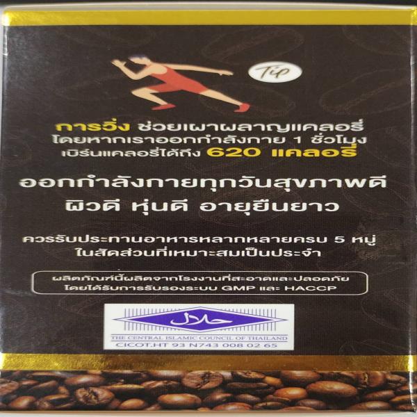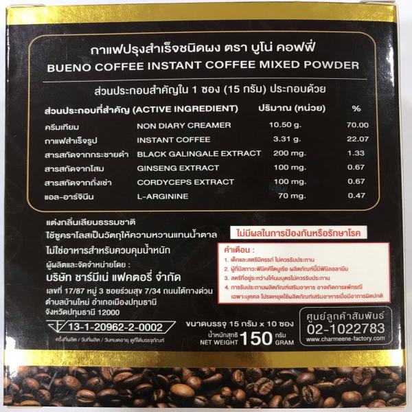 ลักษณะเป็นผง สีน้ำตาล ขนาดบรรจุ 15 กรัม/ซอง ชงละลายในน้ำร้อน ปริมาณ 120 มิลลิตร