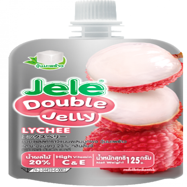 ขนมเยลลี่คาราจีแนน ผสมบุกผง วุ้นมะพร้าว และน้ำองุ่นขาว 20% กลิ่นลิ้นจี่