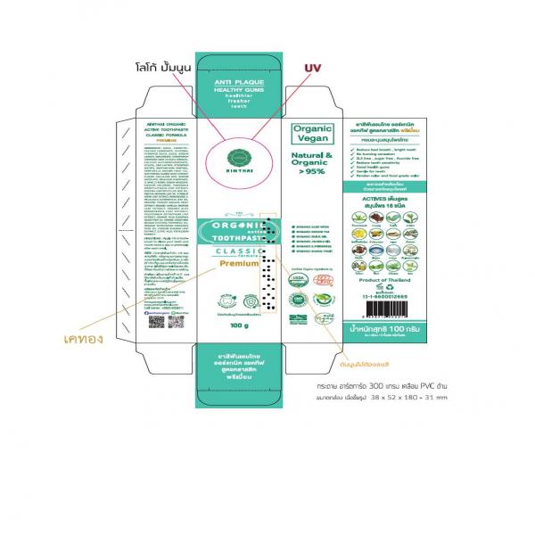 เอมไทย ยาสีฟัน ออร์แกนิค แอคทีฟ สูตรคลาสสิค - พรีเมี่ยม เป็นยาสีฟันใช้สำหรับแปรงฟันเพื่อให้สุขภาพเหงือกและฟันที่ดี ฟันสะอาดอย่างอ่อนโยนด้วยสารสกัดสมุนไพร 16 ชนิด , NATUAL& ORGANIC >95%