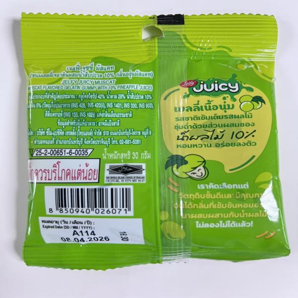 ขนมเยลลี่เจลาตินผสมน้ำสับปะรด 10% กลิ่นองุ่นมัสแคท