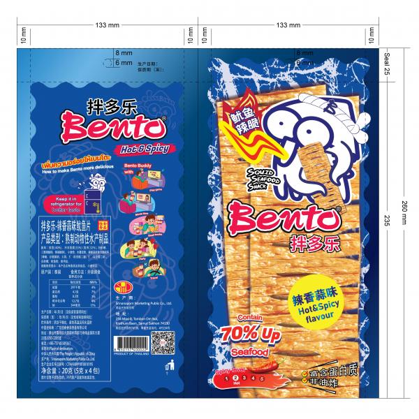 สีน้ำตาลอ่อน-เข้ม ปลาแผ่นบดเหนียวนุ่ม แห้งเล็กน้อย กลิ่นซอสญี่ปุ่น รสหวานเผ็ด กลมกล่อม