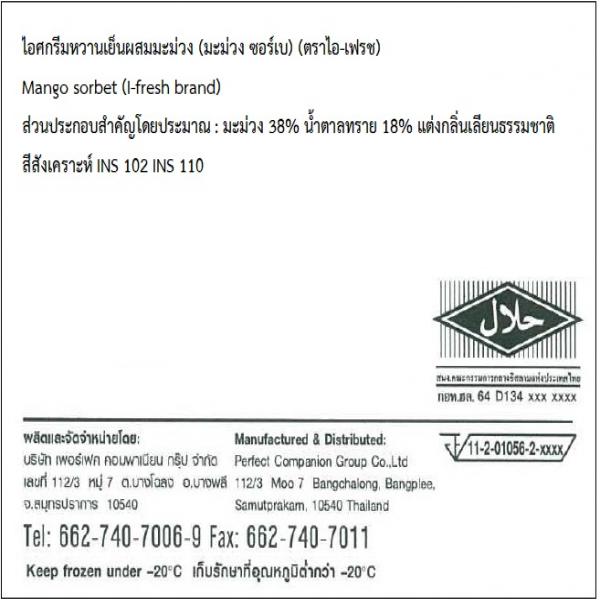 ไอศกรีมหวานเย็นเชอร์เบทกลิ่นส้มสอดไส้ฟิลลิ่งกลิ่นส้ม ห่อด้วยแป้งโมจิ
