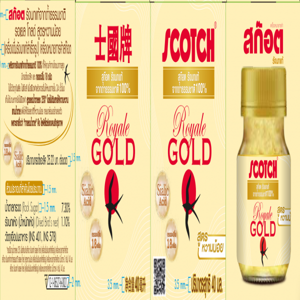 สก๊อต รังนกแท้จากถ้ำธรรมชาติ รอเยล โกลด์ สูตรหวานน้อย (เครื่องดื่มรังนกแท้สำเร็จรูป)